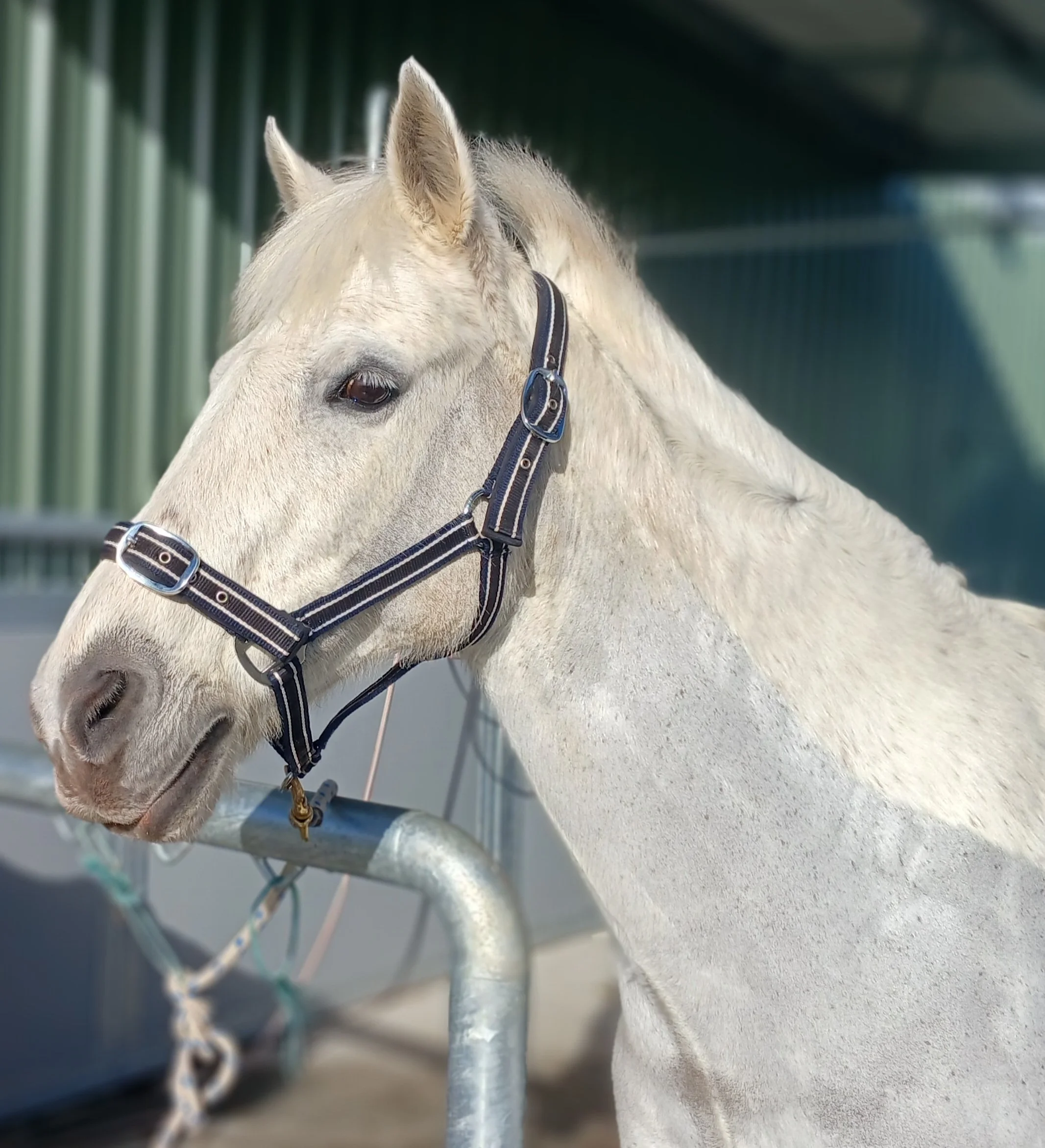 Paris is a 13.2hh, 18yr old, grey, Welsh cross mare. She was purchased from a local family and before joining us had done pony club and a bit of cowboy challenge, so she is comfortable with most of our RDA props and equipment. Paris has a nice forward walk for a small pony and gives our smaller riders a nice active ride.